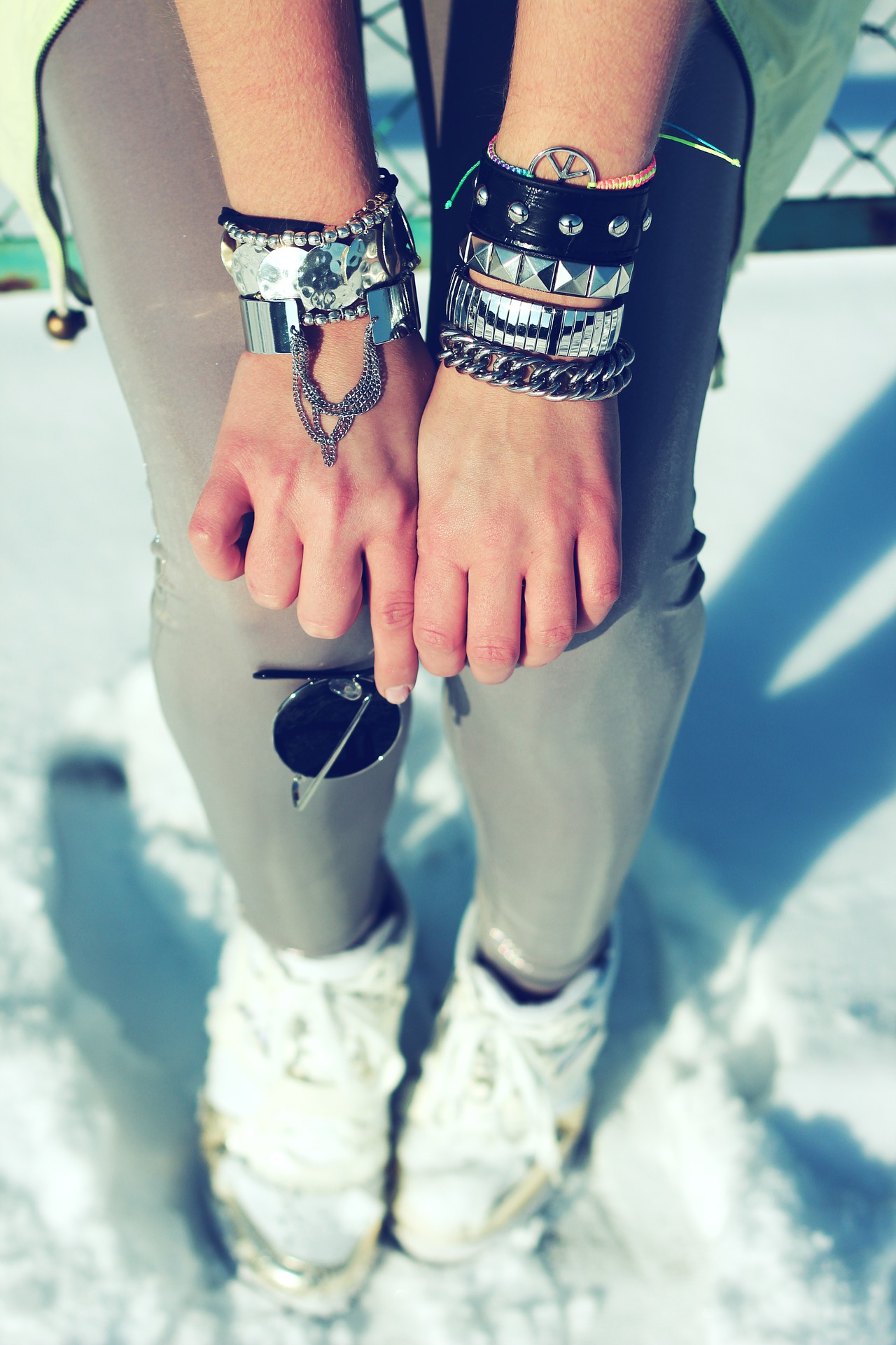Try finding mixed material cuffs. These are ideal for getting that rock-chick look and great for when you want to fire up a conversation at a party.